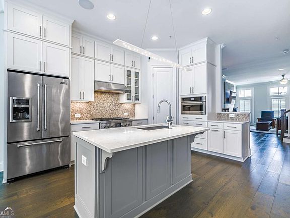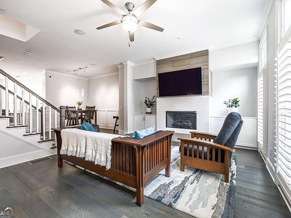 Sophisticated multi-level smart home with luxe finishes & outdoor living in Buckhead's wonderful Garden Hills. Discover elevated living in this meticulously designed multi-level residence offering over-the-top functionality, style, and comfort. From the moment you enter the welcoming foyer, you're met with upscale touches including a custom wine cellar, workshop with built-ins, and a 2-car garage also featuring integrated storage solutions - all on the entry level. On the main level, entertain in style with open-concept living areas that flow seamlessly onto two outdoor decks. The rear deck boasts a hard-lined gas grill, perfect for effortless outdoor cooking. Inside, the chef's kitchen features top-of-the-line appliances, a spacious pantry, and connects to a cozy breakfast room and keeping room. A dedicated dining area, elegant bar with wine cooler, and convenient half bath complete this level. The third level is your private retreat, featuring a spacious primary suite with spa-like bath, a guest bedroom with its own ensuite bath, and a thoughtfully designed landing with flex space for a home office. A dedicated laundry room adds convenience to daily living. Head up to the fourth level for a private sanctuary, ideal for guests or a second home office. This level includes a bedroom with full bath and a stunning private outdoor terrace with fireplace-an ideal space for relaxing or entertaining under the stars. This smart home is equipped with Lutron dimmers and switches that can be controlled remotely or via preset schedules, Sonos sound systems on three levels, electronic door locks that can be controlled remotely, and a smart thermostat to keep you comfortable year-round. Throughout the home, custom wooden shutters add elegance and privacy. Tucked into a gated enclave of only eight John Weiland built townhomes, this is a rare blend of style, tech, and comfort - just minutes from everywhere you want to be!
