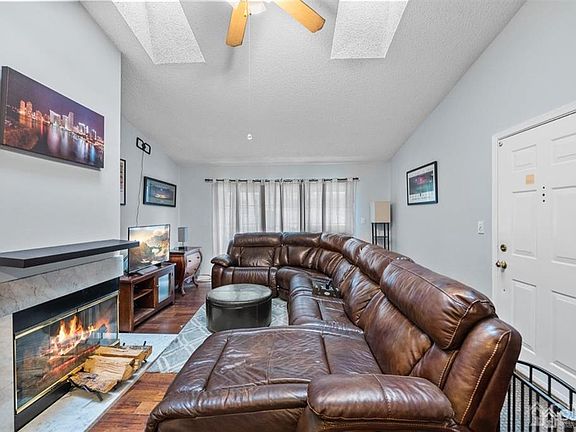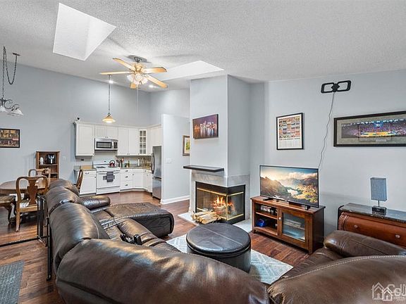 Welcome to Governor's Pointe! It is a desirable residential community, conveniently located near major highways, restaurants, shopping centers, and transportation stations. This is a Penthouse Condo offering a vaulted ceiling with 2 skylights. The living room seamlessly flows into the dining and kitchen areas. It has beautiful espresso laminate flooring throughout, an updated kitchen, a wood burning fireplace, in-unit laundry, a balcony off the living room, and a designated parking space. There are 2 spacious bedrooms both with bay windows. The primary bedroom has generous closet space to enter in, and a spacious bathroom that contains a stand up shower. The second bedroom has plenty of room with closet space. The hallway bathroom is also spacious appointed with a tub/shower combination. This is a beautiful space to make it your own!