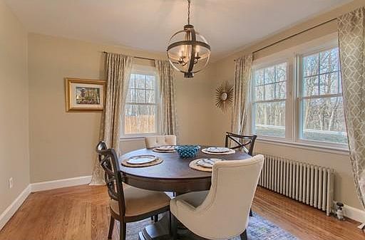 Light filled and roomy Cape with unique and charming details make for a truly special home! Distinctive features include arched doorways, hardwood flooring throughout and a Dutch door leading from mudroom. Eight foot ceilings and abundant windows make all rooms on 1st floor feel big and bright with picture windows in the fireplaced family room and eat-in kitchen. The fully applianced kitchen has a pantry and flows into dining room. A full bath and office/play room complete the 1st floor. Upstairs you???ll find a half bath and 3 bedrooms including master with 2 closets and inviting window seat. Plenty of storage in lower level. A deck off the family room overlooks large fenced backyard with blooming perennials and woodland views. Additional features: 1 car garage, newer roof, gas boiler, windows and tankless hot water. Great location close to schools, Forge Pond beach and retail/restaurants in Westford and Littleton.