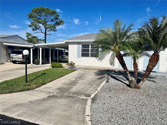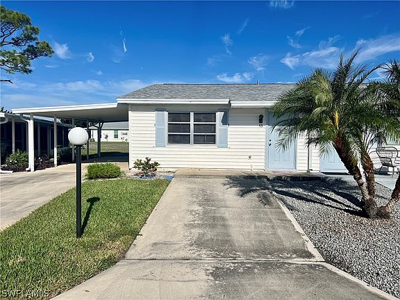 Popular Pinewood Condominium,2 bedroom 2 bath with double driveways and parking for 3 cars, open park like setting in the rear with plenty of privacy, open patio behind the carport, the condo association just installed a new roof on this unit, newer laminate floors throughout the entire unit, NEW WATER HEATER IN 2022, eat in kitchen, GE stack washer and dryer inside laundry area, walk in closet, 55+ community, pets OK, walking distance to stores etc. THE ROOF AND EXTERIOR SIDING IS MAINTAINED BY THE CONDO ASSOCIATION. In need of some updating but priced accordingly. NO flood insurance required here. Lehigh is the highest elevation in the Lee County.