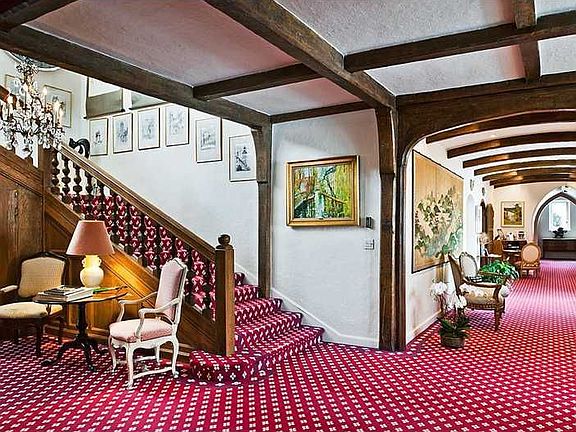 MAGNIFICENTLY LANDSCAPED PROPERTY SURROUNDS THIS FABULOUS STONE, BRICK, STUCCO & TIMBER MANOR HOUSE OF EXTRORDINARY QUALITY. LUDOVICI TILE ROOF, CARVED DETAILING, THICK PLASTER, LARGE ROOMS AND BANKS OF SOUTH FACING WINDOWS FOR WONDERFUL LIGHT. MAJOR LIVING ROOM, LIBRARY HAS ANTIQUE PANELLING, DINING ROOM OPENS TO VERANDAH. MASTER SUITE HAS DRESSING ROOM, TWO BATHS AND A STUDY OR EXTRA BEDROOM. TENNIS COURT AND POOL ARE NICELY HIDDEN. EXCEPTIONAL HOUSE FOR COMFORTABLE LIVING WITH WONDERFUL LIGHT