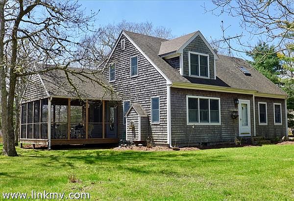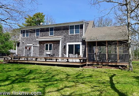 This inviting 4 BR, 3 BA home is privately situated on almost 5 acres in the Quansoo area of Chilmark. The house features open living areas with hardwood floors throughout, two MBR suites, two gas fireplaces & a partially finished basement with custom built ins, offering great space for a home office or study. The rear deck and lovely screened porch add additional spaces for summer enjoyment with pretty views across an expansive lawn and the woodlands beyond. This home lends itself nicely to both year-round or vacation living and offers the potential to add a guest house, tennis court or swimming pool.... * This property is being conveyed with a Quansoo Beach lot, valued at $300,000.
