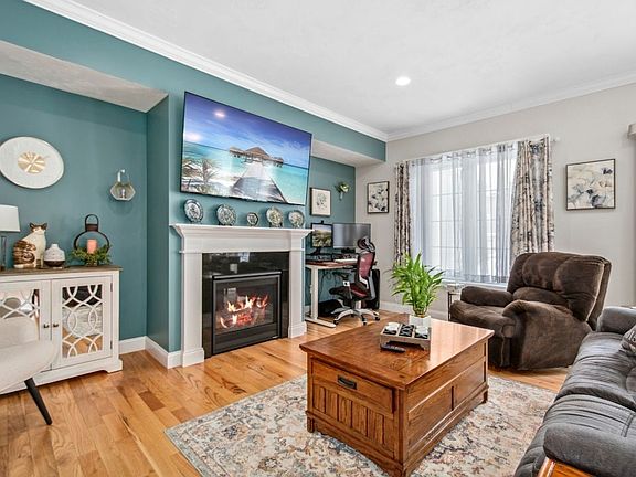 Welcome to Waucantuck Heights, a modern complex near Blackstone River State Park. This duplex style townhouse is spacious with 3 bedrooms, 2.5 bathrooms & a finished walkout basement. First floor w/open concept floor plan. Kitchen w/granite countertops, island w/pendant lighting, gas stove, white cabinets, pantry & hardwood floors. Family room w/hardwood floors, gas log fireplace & slider to deck. Dining room w/crown modelling & fandeliere. Half bathroom. Foyer w/coat closet. Second floor with primary suite w/ceiling fan, large walk-in closet and attached master bathroom w/tiled shower. Two other bedrooms w/closets, ceiling fans & hardwood floors. Second floor laundry w/front load washer & dryer. Full finished walk out basement w/closet & spacious room large enough for home office & additional living space. Gas heat. Central Air. Two car garage. Composite Deck & Vinyl Siding. About 10 miles to I-495 for access to I-90 and 30 minutes to Worcester. Move-in ready modern townhouse