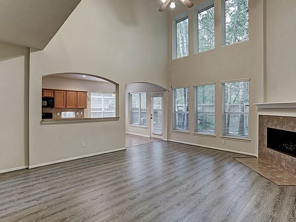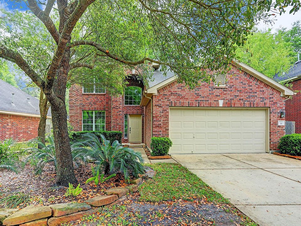 Perfect family home with generously sized rooms located on a cul de sac street. The back yard is fully fenced and backs to a greenbelt affording privacy and serenity. Wood-look laminate floors throughout the main living areas and new carpet through the remainder of the home. The home is immaculate, light and bright. Soaring ceilings and the light neutral color scheme create spaciousness. The master suite is located on the first floor while the game room and remaining three bedrooms are located on the second level, maximizing privacy. The home is zoned to the acclaimed Woodlands schools. New Roof!