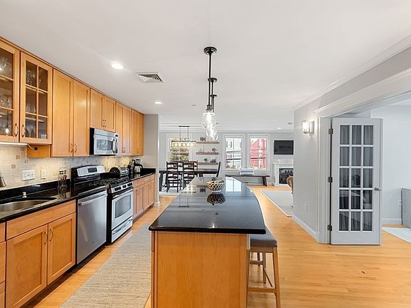 Experience the feel of single-family living in this beautiful townhouse style condo with 3 bedrooms, 3 full bathrooms and 2,238 square feet of thoughtfully designed space.Refinished hardwood floors, custom lighting, neutral paint tones and abundant natural light create a serene and sophisticated atmosphere. The open-concept main level features a chef’s kitchen with a generous island that comfortably seats five.The adjoining dining area is ideal for family gatherings and holiday celebrations, while the living room invites relaxation with its fireplace and ample wall space for displaying curated artwork. Upstairs, a family room accesses a loft complete with a wet bar and sliding doors leading to a private deck with views of historic Abbot Hall. With just three units in the building, a low monthly condo fee of $150, and garage parking, this home offers both privacy and convenience. Enjoy coastal charm with comfort, style and walkability to downtown and Old Town.