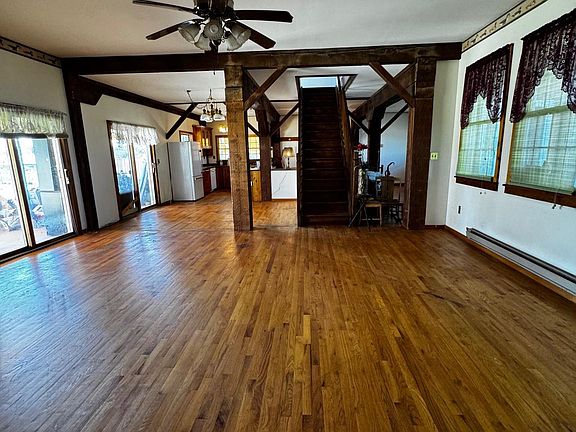 PRICE IMPROVEMENT!! Step into history and modern comfort with this uniquely transformed 1935 mill turned residential masterpiece. From the moment you arrive, you’ll appreciate the blend of industrial charm and contemporary design across 3.4 picturesque acres, offering much potential. Inside, an open-concept floor plan invites you into a spacious kitchen designed for creativity, flowing seamlessly into a living room anchored by a dramatic full-wall fireplace—a perfect setting for cozy evenings and lively gatherings. Enjoy a formal dining area, a practical mudroom, and a convenient half bath on the first floor. Also on the first level, two inviting bedrooms share a stylish full bath. While the second level boasts two en-suite bedrooms, each with its own full bath. The third floor stands ready to be personalized—a blank canvas for your inspiration. Outside, relax on the back deck overlooking a sparkling above-ground pool, and benefit from generous storage in a large detached garage. This distinctive property, while sold “AS IS WHERE IS with no guarantees or warranties” (with updated bathrooms and kitchen awaiting your vision), is a rare estate opportunity that fuses historical character with endless modern possibilities. Don’t miss your chance to own a piece of transformed history where timeless structure meets contemporary lifestyle. Call today for your private tour and start planning the home of your dreams.