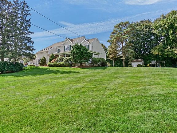 Welcome to 18 Quail Ridge Road, a beautifully situated colonial, sitting proudly on a thoughtfully designed lot. The sprawling custom front porch beckons you to stay awhile before you even step through the door. This grand front porch offers space for entertaining and relaxing, with room for multiple furniture arrangements, featuring a stamped concrete floor and mahogany ceiling. With views looking out over meticulously maintained grounds, offering a combination of lush landscaping and perennials as well as open space to roam. Step inside this incredible home and you are immediately welcomed by a soaring, light filled foyer. The family room greets you with a lovely gas fireplace and mantle along with views of the backyard and surrounding grounds, including a mahogany deck and gorgeous in-ground salt water pool. This large home offers a bright, custom renovated kitchen with hardwood floors and a private laundry room alongside for ultimate convenience! A formal dining room, living room, half bath and large primary bedroom suite complete the first floor layout. The primary bedroom offers a stunning renovated bath and dedicated hot tub area giving you escape, privacy and relaxation! The second floor features, two bedrooms, another beautifully updated bathroom, and a light filled bonus room above the garage currently used as a gym. A large finished lower level offers additional space to meet your specific living needs. Schedule a tour of this wonderful custom home today!