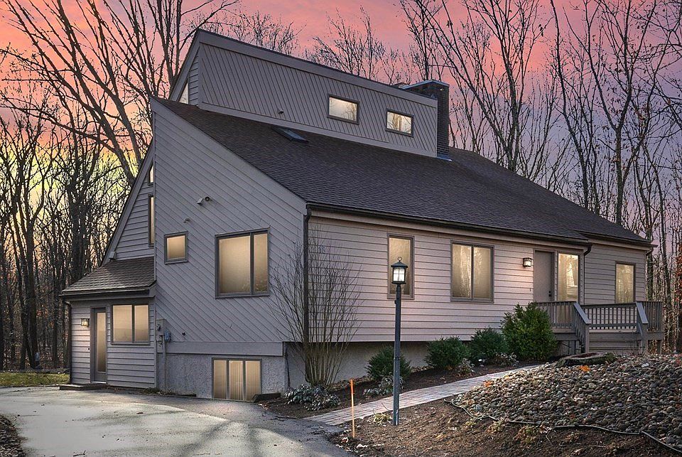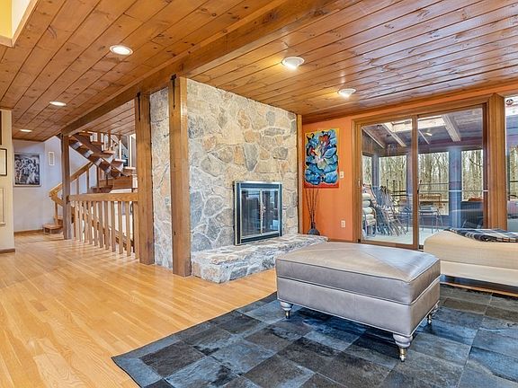 Stunning and unique deck house in the most prestigious area of Sharon! Four levels of contemporary living! This spacious house features 3+ bedrooms,2 full bathrooms,3 fireplaces,hardwood floors throughout,vaulted ceilings,ceiling fans,large windows,lots of closet space,50 energy savers recessed lights. Too many updates to name. Extra insulation,all bulbs replaced by Mass Save (2019),all chimneys cleaned (2019),heating system serviced (12/2020). Fabulous fireplaces living room with cathedral ceilings,large windows,recessed lights,and 3 season porch. Beautiful eat-in kitchen with recessed lights,granite counter tops,Sub-Zero fridge,Wolf stove,oven,hood,Miele dishwasher,and copper undermount sink.Private master suite features cathedral ceilings and fan,fireplace,vanity room.Both bathrooms have Swarovski crystal hardware,Italian marble,custom made Oceana sinks. The house abuts conservation land with full privacy. New large patio (2020).Oversized 2-car garage with extra storage above.