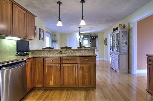 Spectacular Colonial located in Meadow Creek Dracut's Premier Neighborhood nestled within Four Oaks Country Club and Golf Course. This home features 5 bedrooms & 2.5 baths, a large family room with a gas fireplace, private home office , an open concept eat in kitchen with cherry cabinets, including granite counter tops with extra counter top seating, along with a formal dining room .The 3rd floor has a playroom & 5th bedroom . The exterior offers a very Inviting back yard with stamped concrete patio, in-ground pool with an inter grated hot tub, cabana, mahogany deck , professionally landscaped lot, sprinkler system through out the front and back yard. Some extra features include hardwood flooring , crown molding, central vac ,central a/c , 2 car garage and so much more.