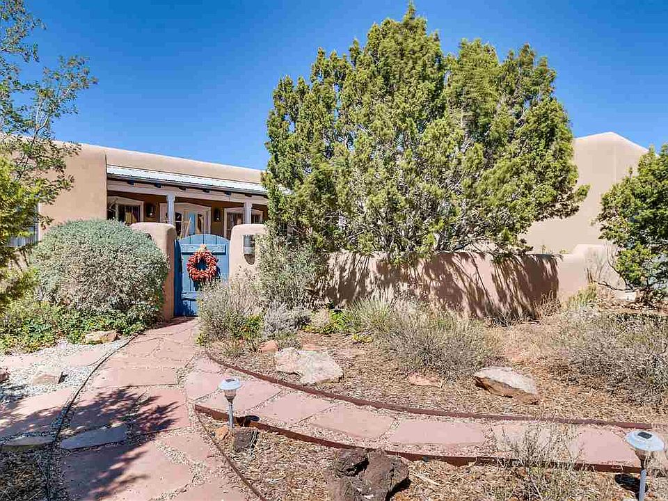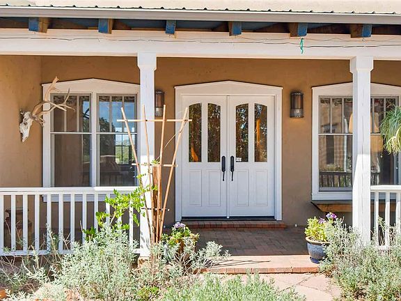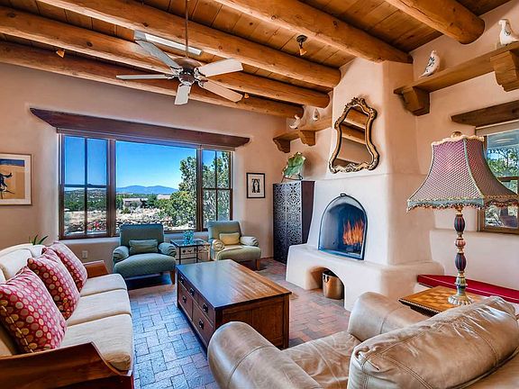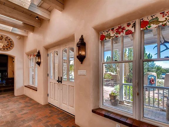 Hacienda Remedios is exquisitely designed by renowned builder, Ray Gee. Balanced with privacy and perfection this 2.1-acre estate boasts lush exterior landscaping with authentic Pueblo style architecture. The expansive 3100 square feet of living space offers generous separation between the master and guest suites. Custom wood elements with arches, angles, and an abundance of natural light blend beautifully with warming kiva fireplaces and interlocking brick flooring throughout. High viga ceilings luminous windows, and exceptional views are a feature of every room. The open floor plan seamlessly merges the Chef's kitchen with living and dining areas. A walled courtyard greets you at the entrance of the property, while several French doors lead to various exterior flagstone pathways. Enhancing the grandeur of Hacienda Remedios is a separate and spacious guest suite with its own private entrance, functional greenhouse, 2-car garage and many more exclusive architectural elements.