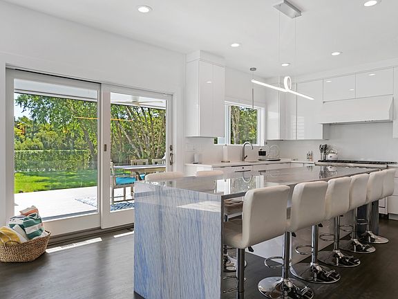 Rental Registration #: RP201474 Also available for The US Open Golf Tournament - A 2 acre picture perfect retreat on one of the prettiest lanes in Remsenburg. The ideal getaway is right here: four bedrooms (two kings, a queen and convertible King), a pool, tennis and pickle ball court, park-like grounds, a game room, media room with 85-inch screen, an eat-in cook's kitchen, with Viking range, light-filled open living areas that are great for entertaining or just relaxing. The home has been completely renovated from top to bottom. Relax on the deck or by the pool and enjoy spectacular views of the preserve-like natural setting leading to a pond kissed by bay breezes. There are multiple living spaces indoors and out, the living room with fireplace, eat-in kitchen with Brazilian macauba clad island seating, and formal dining area. Outdoors enjoy the birds flitting among the native grasses, play tennis, or pickleball, or barbecue on the deck. The upstairs master suite has a private terrace, vaulted ceiling and luxurious marble bath with frameless glass-enclosed steam shower, soaking tub and double vanity. Additional bedrooms and baths are bright and stylish. In the finished lower level is a sitting area, the media room, full bath, recreation area, gym, media room and bonus room with Queen bed. At the end of the lane is a right of way to Moriches Bay. Watch the sunset or the local regattas. You may never want to leave this piece of paradise, but if you do, it's just 4 miles to the Village of Westhampton Beach. Beach passes may be purchased for Southampton town beaches or Westhampton beach Village Beaches. Conveniently situated 70 miles from NYC - avoid the traffic farther east.* two weeks during US Open- 40,000