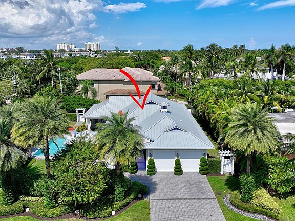 Be prepared to be captivated by this spectacular West Indies-inspired estate, nestled in the heart of the exclusive Ocean Ridge community. Set on an expansive corner lot spanning over 1/4 acre, this tropical paradise offers over 2,700 SF of luxurious living space, including a separate guest house, 660 SF covered patio and exclusive deeded access to a private beach, making it an exceptional coastal retreat. Built in 2014 with meticulous attention to detail and no expense spared, this stunning home exudes sophistication and craftsmanship. As you approach, you'll be greeted by lush landscaping and a charming Bimini-shuttered breezeway, with a washed gray wood ceiling, leading you into an oasis that feels like an island getaway. Inside, soaring vaulted wood ceilings and an open floor plan create an inviting ambiance that flows seamlessly from the great room to the kitchen and expansive outdoor living spaces. The spacious great room, bathed in natural light, serves as the heart of the home, connecting effortlessly to both the gourmet kitchen and the vast covered patio. The kitchen itself is a chef's dream, featuring custom white shaker cabinetry, elegant Carrara marble countertops and backsplash, a generous island with an apron-front sink, and top-tier appliances. Nearby, a pantry provides ample storage, ensuring both style and functionality. The private master suite is a tranquil retreat, featuring vaulted wood ceilings and French doors that open directly to the pool and patio area. Two custom-designed walk-in closets provide abundant space, while the spa-like master bathroom boasts dual vanities with Carrara marble counters, a large walk-in shower with a bench, a freestanding soaking tub, and a separate water closet. A second master suite or guest room is thoughtfully positioned off the dining room, complete with custom built-ins, a walk-in closet with a barn door, and an ensuite bath for ultimate convenience. Step outside, and you'll find your own tropical sanctuary. The expansive covered patio is an outdoor living room in itself, complete with multiple lounge areas and a gas fireplace, perfect for entertaining or unwinding. The shimmering pool is surrounded by lush landscaping, offering privacy and serenity. The nearby guest house provides a charming retreat for visitors or family, with its own space for relaxation. Additional outdoor features include a private outdoor shower, a tranquil bubbling fountain and a fully fenced yard with custom-built arbors. This exceptional home also includes hurricane impact windows and doors throughout, an in-ground propane tank, solid wood interior doors, space-saving pocket doors, elegant crown molding, Bahamian wood shutters, Windsor beadboard, two working fireplaces, tongue and groove wood ceilings, a large laundry room, and an air-conditioned two-car garage. The custom paver driveway adds a touch of elegance to the exterior, while the absence of an HOA offers freedom and flexibility. Best of all, you're just a short stroll away from the private, gated beach access. Perfectly situated in the charming seaside town of Ocean Ridge with its own police force and close proximity to a variety of private schools. This home is conveniently close to the vibrant Atlantic Avenue in Delray Beach and world-class shopping and dining on Palm Beach's iconic Worth Avenue. Don't miss your chance to own this exquisite slice of coastal luxury!