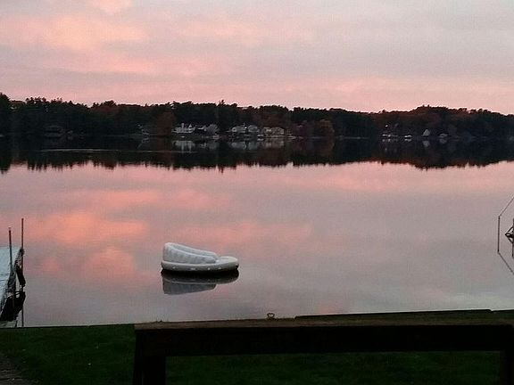 Spectacular WATERFRONT! Surrounded by water on three sides, this beautiful, move-in ready home has magnificent water views from every room. Life on a lake is like being on vacation every day. View spectacular sunrises over Lake Lashaway from your spacious, custom kitchen recently updated. Great/sitting room off newly build patio. Recently updated bath. Enjoy boating, fishing, jet skiing, swimming, and skating on this 290 acre, full recreational lake. Dock your boat on your own private dock. Approximately 350 feet lake front. New gazebo with motorized screens. This home features an open floor plan with hardwoods & Italian tiles throughout, granite countertops, large island (seats 6), stainless steel appliances, 1st floor laundry, 2-car garage, breezeway, and cathedral ceilings with skylights. Plenty of storage in this 3 bedroom home, including a walk-in closet in master. Curl up by the fire in the sitting room or enjoy the warmth and convenience of a propane stove in the great room. Easy access to major routes, including Rt. 9, Rt. 20, Rt. 84, and the Mass Pike. Shopping, bowling, golfing, movie theater, and a variety of delicious restaurants are all nearby. Pull your boat up to 308 Lakeside, and meet your friends for a delicious meal, live entertainment, full bar, and a beautiful view of the lake from their outside deck.