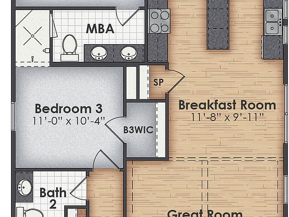 The Beckett combines modern style with timeless functionality. Discover comfort, convenience, and charm in this thoughtfully designed 3-bedroom, 2-bathroom home located in the desirable Rivers Edge community. With 1,368 square feet of living space on a .16-acre lot. Step inside to find an inviting open-concept layout, featuring a spacious Great Room that flows seamlessly into the Breakfast Room and Kitchen. The kitchen offers plenty of counter space and cabinetry, perfect for everyday living and entertaining. The private Master Suite includes a generous bedroom with ensuite bath, while two additional bedrooms and a second full bath perfect for guest or office. Enjoy outdoor living on the covered front porch or back porch, ideal for relaxing evenings and weekend gatherings. $2,500 "Use It Your Way" Buyer Credit when using a preferred lender. Apply your credit toward closing costs, rate buy downs, price reduction, or home upgrades like appliances, blinds, and more-making your move-in easy and affordable.