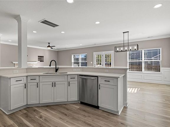 Elegant gas fireplaceOpen floor planBeautiful lifetime wood flooringGranite countersDreamy kitchenUpgraded cabinetsSpacious deck