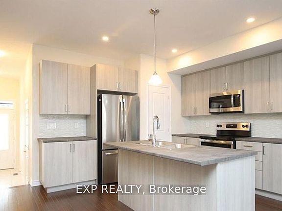 Welcome to this beautifully maintained EQ Scarlet end-unit townhome, perfectly situated on a quiet crescent in sought-after Fernbank Crossing. The open-concept main level features 9-foot ceilings and gleaming hardwood floors, creating a bright, stylish, and functional living space. The upgraded kitchen is a chefs dream, complete with stainless steel appliances, an oversized breakfast bar, pot lights, a walk-in pantry, and an over-the-range microwave.Hardwood stairs lead to the second floor, where you will find a spacious primary suite with a walk-in closet and a spa-inspired ensuite boasting double sinks, a soaker tub, and an oversized glass shower. Two additional bedrooms, a convenient second-floor laundry, and a full bath complete this level. The fully finished basement adds versatility with a large rec room and a full bathroom ideal for entertaining, a home office, or overnight guests.With 1,954 sq. ft. of living space, this turn-key home offers modern living in a family-friendly community, just minutes from Walmart Super centre, parks, schools, and scenic trails.