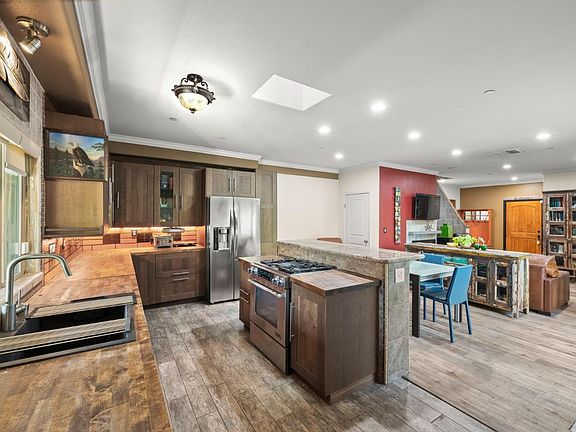 With 3 private entrances and 2 exterior decks, the top floor is dedicated to a luxurious master suite, complete with a private entrance that can serve as separate living quarters, as well as a balcony offering stunning 180-degree mountain views, a skylight, a gas fireplace, a wet bar or kitchenette, and a master bath. With new flooring, fresh paint, updated tile work, and new windows, this home is truly move-in ready.