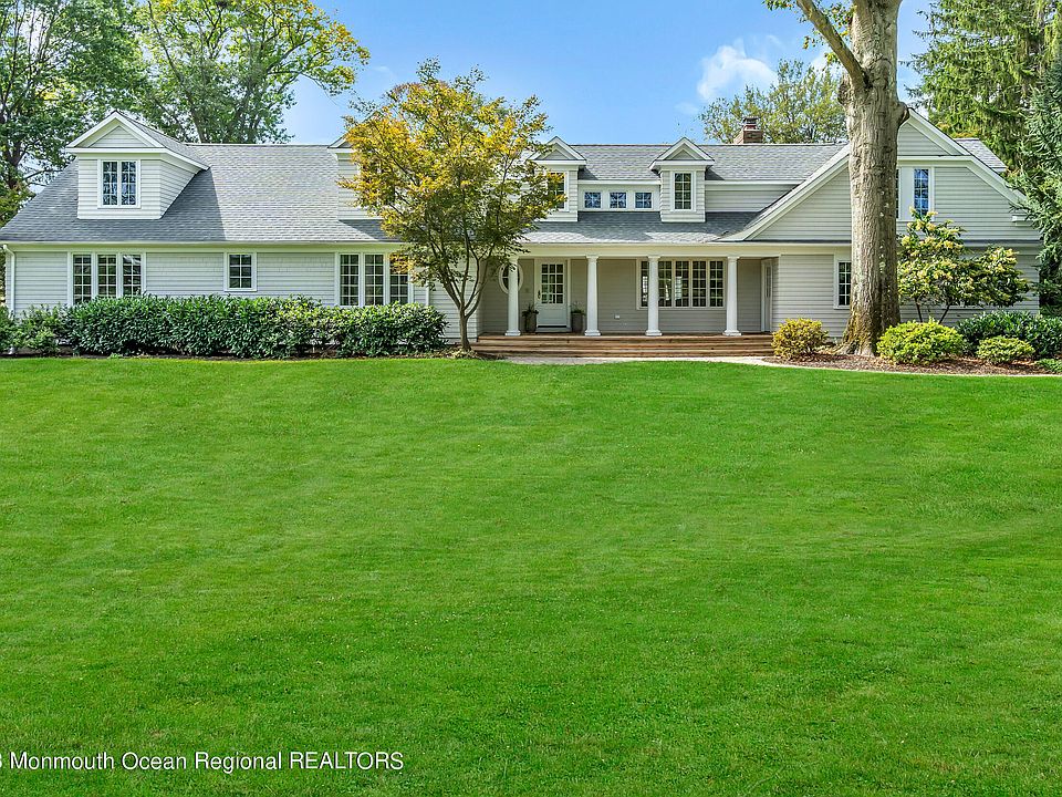 WELCOME to this Stunning & Gracious, Recently Renovated home on a 2.1 acre estate with a backyard paradise sure to please. Step into the spacious foyer to find an inviting, Open & Airy living space with natural light throughout. 5 bedrooms, 5 full baths with bdrm suites on both levels. Living Room spans front to rear of home with fireplace and French doors to patio. Beautiful kitchen with oversized island seats 5 + additional seating area, and is open to Sun Room. 1st floor bedroom suite + an additional bedroom and full bath. 2nd floor has the ultimate Master Bedroom Suite beginning with 23' hallway with master bathroom, closets (walk-in + 2), Barreled ceiling and balcony overlooking pool and yard. Once outside, enjoy the saltwater Gunite pool (new systems 2023) in your private backyard Full bath with sauna is accessed from pool area/garage. New Roof intalled in 2023. Two new Water Heaters in 2022. Rumson offers a way of life not found in most other towns, a strong sense of community, highly-ranked schools, minutes to NYC fast ferries and trains, and easy access to the beach/Atlantic Ocean.