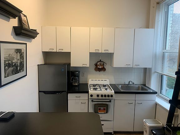 The apartment features hardwood floors, an updated kitchen and lots of natural light. This apartment comes equipped with a full size Murphy bed.