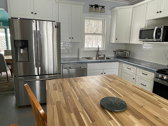 Fully furnished whole house rental. Victorian farmhouse built in 1900 with many updates including custom tiling in kitchen, stainless steel appliances, new hardwood floors on second floor, three bedrooms plus a dedicated office space and large dining room. Laundry on first floor, large screen TV with high speed internet and ample space. Back deck overlooking forever wild space and across the street from the beautiful Saco river. We are a NO TOBACCO or NICOTINE property. This includes smoking and vaping. Tenant is responsible for home heating oil. Amenities included are WiFi, electric, water, garbage and off street parking for 2 mid sized vehicles in shared driveway. Fully furnished Background check required for all tenants over 18. Lease required with 90 day minimum