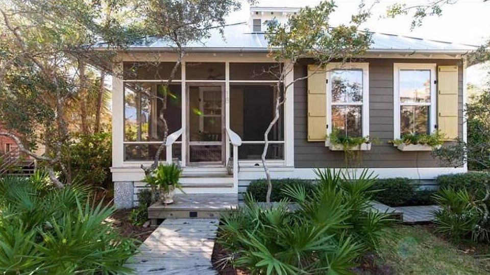 This charming beach cottage, featured in Southern Living Magazine, is close to several neighborhood accesses to the beach and emerald waters of the Gulf of Mexico, a 25-mile bike path along Scenic Highway 30A, as well as unique shopping and dining. Factory-built with steel frames and hand-customized on site, this single-level home incorporates traditional southern architectural features, such as white oak floors, tabby piers, and functional wood shutters. The modern kitchen includes stainless steel appliances, glass tile backsplash, a sunny breakfast nook, and a chalkboard wall for creative inspirations. A crisp palette makes the main house master bedroom a serene retreat, with spa-like master bath, including double vanity and walk-in shower.