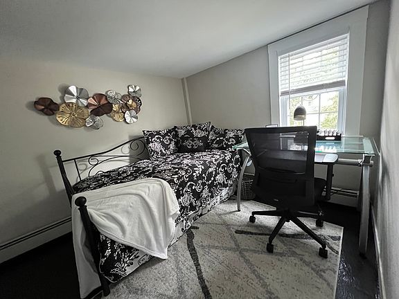 FULLY FURNISHED 2 story with large Queen bedroom with walk in closet, Office with Daybed, well equipped kitchen with coffee bar, dining room, living room with 63"smart tv, 1.5 bathrooms. ALL utilities including: heat (thermostats in living room and upstairs hall) electricity, water, sewer, AC, trash, high speed wifi, and outside security cameras are included! Full size Washer and dryer are in unit. Personalized keyless entry system. Assigned off street parking.