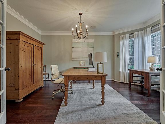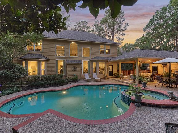 Tucked away on a quiet cul-de-sac lot in the heart of The Woodlands, this stunning home blends warmth, elegance, and functionality. The backyard oasis steals the show with a sparkling pool, spa, lush landscaping, and a spacious covered patio perfect for entertaining or relaxing. Inside, the inviting open-concept kitchen features granite counters, stainless appliances, and custom cabinetry, seamlessly connecting to a cozy breakfast area and elegant formal dining room. Soaring ceilings and large arched windows in the living room fill the space with natural light, highlighting rich wood floors and a beautiful fireplace centerpiece. A dedicated home office offers a quiet space for work or study, while a versatile game room upstairs adds extra room for fun and relaxation. Impeccably maintained and thoughtfully designed, this home captures comfortable luxury and timeless charm. Recent updates include: Roof 2023, HVAC units 2023 & 2024, pool resurfaced 2017 & new pool heater 2018!