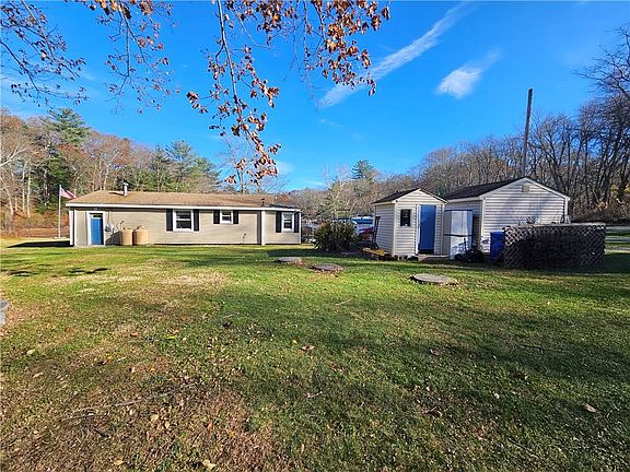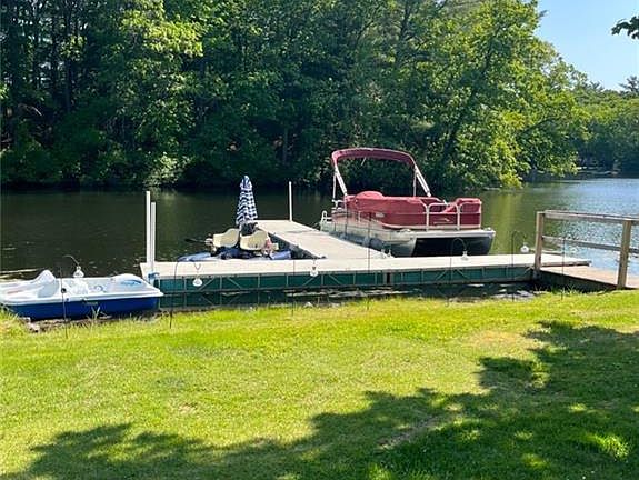 ADORABLE YEAR-ROUND WATERFRONT HOME on SLACK POND! Enjoy breathtaking water views from nearly every room in this beautifully remodeled 2-bedm, 1bath home, perfectly situated on a GORGEOUS corner lot almost a .50ac. Featuring a NEWER 28 ft floating DOCK, Ideal for year-round living or the perfect vacation getaway. Step inside to an inviting open floor plan w/a sun-filled kitchen boasting CORIAN counters, spacious dining, & a warm, light-wood family rm w/ double windows overlooking the water. Large primary bedroom offers barn doors, abundant natural light, & serene dock views, while the 2nd bedrm features charming barn doors w/great space. Oversized fully tiled bathrm includes a luxurious walk-in shower. Enjoy your morning coffee or unwind w/evening wine in the cozy enclosed front porch. Additional conveniences include a separate laundry rm, utility rm, 2 large sheds & a huge circular paved driveway—perfect for ample parking, RVs, or future garage/expansion potential. So many updates including NEWER Heating, CENTRAL AIR, Hot Water heater, Paint, Flooring, Electric, SEPTIC SYSTEM.& MUCH MORE. Set the scene for memorable gatherings on this stunning 150-acre pond. Enjoy fishing, boating, tubing, jet skiing,, swimming, cozy winters & more. Bring Boats up to 24 ft! Beach & boat launch are minutes away. LOW TAXES, includes weekly rubbish pickup & NO FLOOD INSURANCE REQUIRED.Wake up to peaceful water views every day—your waterfront dream awaits