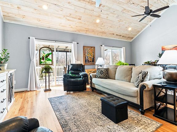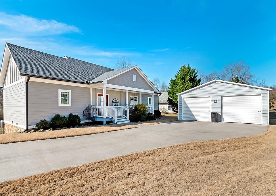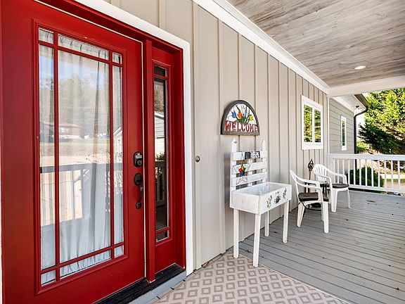 This 2BR/2.5BA traditional one level ranch home is 1,332 sq. ft. on 0.63 acres, with clean and welcoming interiors, and extensive and thoughtful landscaping outside. On the main level you are greeted with a lovely view of the cathedral-style great room, which includes living room and dining areas with stunning pickled tongue and groove wood ceilings, which also has an open concept kitchen. Nearby is the “guest” bedroom and bath, with a partly tiled shower, and a laundry closet in the hall. The kitchen has stainless steel appliances, a farmhouse sink, a French-door style refrigerator, and quartz countertops. The master suite is situated in a private end of the home and also has a pickled tongue and groove cathedral ceiling, with the master bath having a fully tiled walk-in shower and large walk-in closet. The upper back deck is accessible from the great room and side yard, and has a permanent awning for cover. It has stairs leading to the flat grassy back yard, which is entirely fenced in, and beneath is another deck with more seating area, with Trex decking. The charming little door which you might think leads to just a crawlspace opens into an amazing 800 sq. ft. +/- bonus space and although the ceilings are less than 6 feet high, there is a finished den with laminate flooring, modern rustic walls, and its own half bath. Past that is a partially floored and well-lit workshop/storage room, which has been used as an art studio by the current owner. This room also includes a mini-split HVAC to keep you comfortable year-round. In the summer, the front yard is bursting with color from the phlox, and the 2-bay garage in the paved concrete driveway provides convenient cover for your vehicles, and some extra storage space. This unique and beautiful home is less than five all-paved miles from Downtown Blue Ridge, about 3 miles to Fannin Regional Hospital, and less than a mile from Old Toccoa Farm, which includes a golf course and tavern.