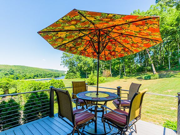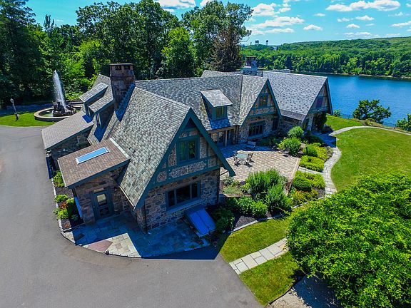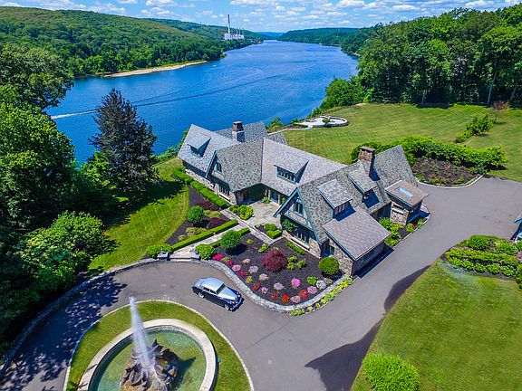 Grand Estate located on prime CT river waterfront property within the Historic Middle Haddam District. Tucked away on 4.74 secluded acres, this 7 Bed, 3.2 Bath English Manor is a stimulating retreat that will invoke your most vivid of imaginations. Entrance fountain, stone exterior facing and slate roofing attracts your attention as you arrive to the complex. Decadent finishes outfit the interior and marry old world charm with contemporary living. Great room w/ brick interior walls, fireplace, and intricate stained glass work radiates a soaring ambiance from the exposed beams of the tall cathedral ceilings. Bright kitchen w/ granite island/ breakfast bar, and access to back patio. Well-appointed formal dining room w/ chandelier offers a classy dining experience. Master bedroom invites views of the river by the bed or within the attached sitting room, while unique angles of the cathedral ceilings and large windows heighten the senses. Master bath w/ stand up shower, and a circular stained glass design above the tub and stone facing/ woodwork featured are stunning. 4 other bedrooms of the main building: two share an en suite w/ brick-faced double vanity, and a stand up, floor to ceiling tiled shower; another hosts an attached bath w/ floor to ceiling tiled shower. Carriage House is an opportune in-law suite/ guest house w/ elevator and balconies. Immerse yourself in the Jacuzzi built into the stone patio bordering the riverfront. This is truly Middle Haddam's best kept secret!
