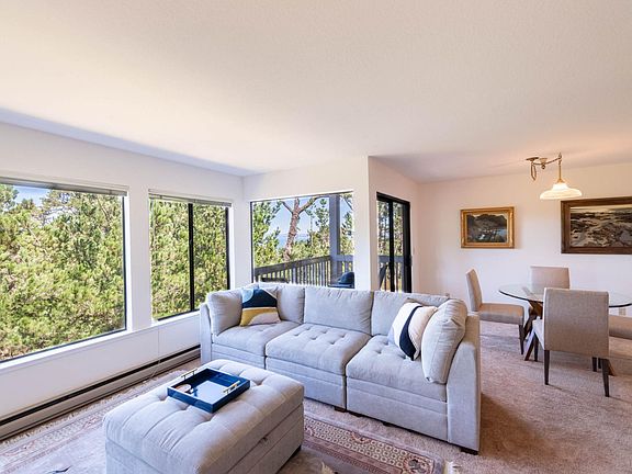 Walk through the front door and step into a light-filled livingroom with expansive views of the surrounding pines and ocean in the distance. Gorgeous plein air impressionist paintings by famed local artist Brian Blood decorate the penthouse with splendid scenes from Pebble Beach, Point Lobos, Monterey, and Asilomar. Recent renovations include beautiful stone countertops for the kitchen, bathrooms, and huge livingroom bar, new appliances, and new flooring throughout.