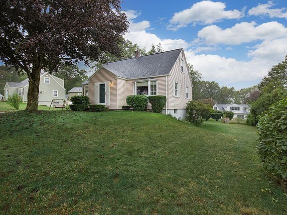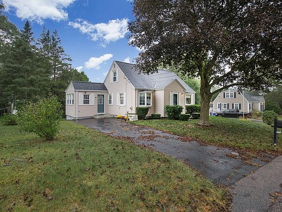 Home Sweet Home for this Immaculate three bedroom Cape!! Walk into the cozy knotty pine den with several windows. Step up to the fully applianced eat-in kitchen with tile floor. The generous sized dining room has a beautiful bay window with a large sill...great for decorating. Large living room with a second great bay window. Hardwood floors on the first floor are in wonderful shape. First floor bedroom with nice size closet. Two additional bedrooms upstairs, one large bedroom has ample built-in drawers. Young roof, vinyl replacement windows and low maintenance vinyl siding. Perfect back yard with storage shed. This house has a park in walking distance and his two minutes from the Mass Pike!!! Don't miss this one!!!