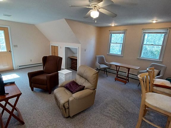 One bedroom apartment above garage of landlord's home, directly located on a 28 acre private pond with access to private beach with a canoe/kayak dock. Property 1/4 mile from the 835 acre Punkhorn Parklands with miles of walking/running/biking trails. Located within 1.8 miles of Cape Cod Rail Trail. Private entrance, new carpeting, all appliances including dishwasher. All utilities included (water, heat, electricity, air conditioning) plus internet. Off street designated parking. Can be rented semi-furnished (optional), including sleep number bed with adjustable base, 2 recliners (one electric), and 2 additional chairs. No smoking allowed. A small graphic designer business is run by landlord in the home, so renter must tolerate sounds of small printing & cutting machines possibly running until midnight. First & last month's rent, plus damage deposit, required to move in. Pet MIGHT be considered with an additional pet damage deposit, assessed on a case by case basis, but absolutely no barking dogs. (A greyhound currently lives with landlord.)