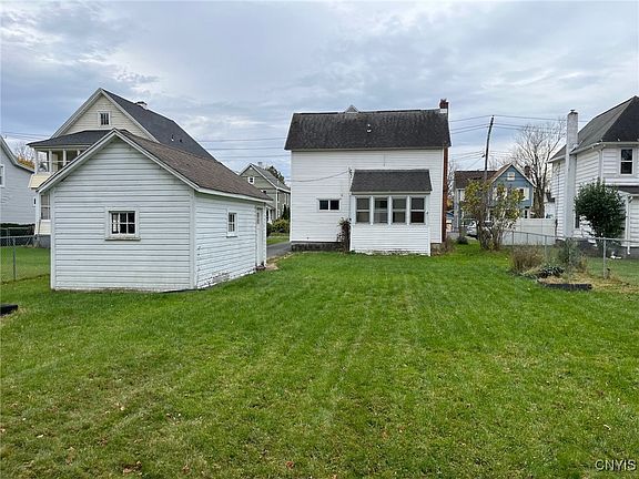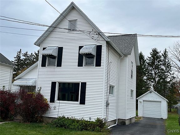 The layout includes a cozy front and rear enclosed porch, perfect for enjoying seasonal views in comfort. Outside, a flat backyard provides ample space for outdoor activities and gardening. A one-car detached garage offers convenient storage and parking.