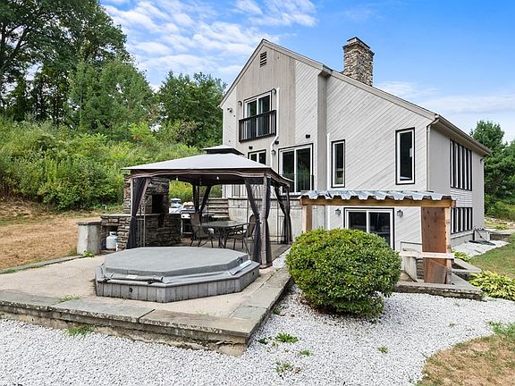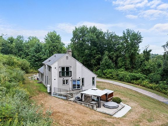 HIGHEST & BEST BY 2PM SUNDAY, AUGUST 28TH. ! This contemporary cape has so much to offer. Up the driveway this home sits behind trees on 5 acres with no one in sight. The first floor boasts an open floor plan. The living room includes a marble fireplace, cathedral ceiling and so many windows! The adjacent eat-in kitchen has granite counters, recessed lighting and a slider to the outside. This floor also includes two more bedrooms & a bath. First floor laundry is housed in a large laundry room with ample cabinets & a sink. Den/Office abuts the laundry area. Walk up to the second floor which is the entire primary suite. This open room has so much space & currently includes a huge tub, a whole wall of closets, double sink vanity & a huge walk-in tiled shower. A wonderful stone patio off the kitchen is an amazing space for outdoor entertaining & dinners! A finished basement provides a great family room with slider to outside. Mini splits & hook up for generator too!