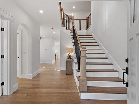 Stunning New Construction Ready for Immediate Occupancy! Situated at the end of a cul-de-sac in a premier Bedford neighborhood, on over an acre of fully cleared, hydroseeded land. Every inch of this home showcases high-end craftsmanship and upgrades, including 6” white oak hardwood floors, custom tile shower surrounds, and Thermador appliances. The main level offers a sun-filled dining room, private office, and a chef’s kitchen with a center island, quartz counters, wet bar, walk-in pantry, and 8’ black Andersen sliders opening to an expansive back deck. The living room features exposed beams and a gas fireplace, creating a warm, elevated space perfect for entertaining or everyday living. Upstairs are four bedrooms, including two with a shared Jack & Jill bath, one en-suite with walk-in closet, and a primary suite with a massive walk-in closet and spa-inspired bath featuring a glass-enclosed tile shower and soaking tub. The large unfinished walkout basement offers endless potential for future expansion - whether you envision a home gym, golf simulator, or additional living space. A three-car garage, top-rated Bedford schools, and quick access to local amenities complete the picture. Open houses Sat, Nov 8 & Sun Nov 9 12–2 pm!