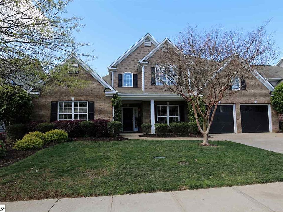 Home zoned for award-winning schools, built in 2005, featuring master on main level and an amazing patio with pergola! This brick front home is set on just about a 1/4 acre. A rocking chair front porch greets you, and the two story foyer adds dramatic appeal to the entryway. To your right, the formal dining room is currently being used as a wonderful extra living room. The soaring ceiling in the great room provides excellent natural light and the double-sided fireplace creates great ambiance. Head into the spacious eat-in kitchen, which features a great sized island for extra work space, gas cooktop, double ovens, and a walk-in pantry. A flex room on the main level is currently being used as a guest room, and another full bath is just around the corner. The main level master suite is a great size, and features his/her walk-in closets, double vanities, tile shower, and garden tub! Head upstairs, where you will find three more bedrooms and two full bathrooms. Each bedroom features a walk-in closet, and the smallest is still 13'x11'! Head back downstairs and out to the huge patio with pergola, and you will find a beautiful seating area. There is even a dining area, outdoor fireplace, and outdoor kitchen with bar top seating! Talk about an amazing entertaining space! The backyard even backs to a treeline for great privacy!