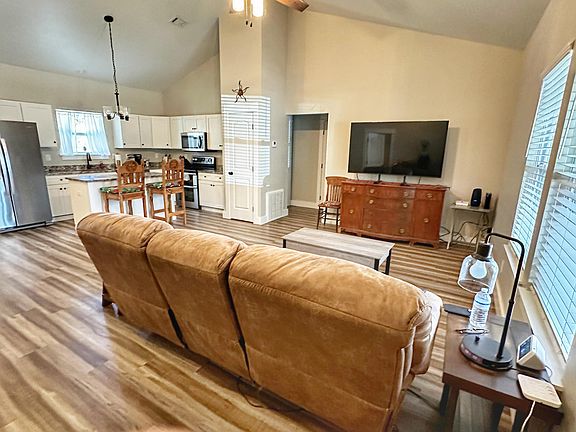 - Vaulted Ceiling(s), Kitchen Island, Shelving, Split Bedroom, Bedroom, Full Bathroom, Kitchen, Living Room, Master Bathroom, Master Bedroom, Utility Room