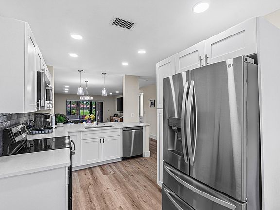 Lanai with floor-to-ceiling slidersSleek quartz countertopsCustom led lightingOpen-concept layoutCrisp modern bathroomsSpacious breakfast barRemote-controlled blinds