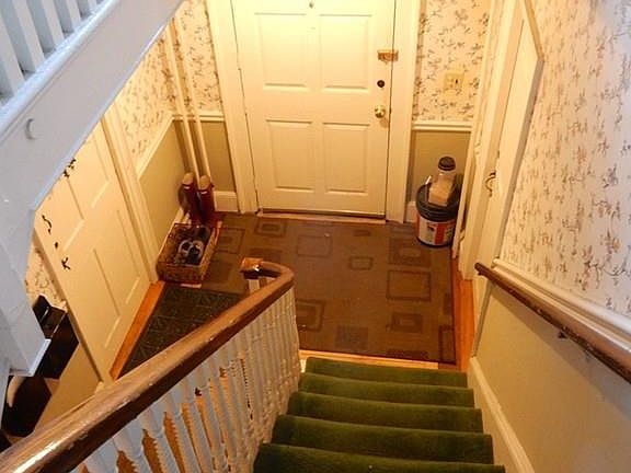 Stately home in the McIntyre District has been converted to apartments. This one is a townhouse style on the second and third floors. Many original features, including wide pine floors, dentil moldings, etc remain. Sorry, the fireplaces are decorative only. Living room (14 x 16) has four windows so it enjoys an abundance of sunlight. The kitchen is fully applianced and has a gas stove. The bedroom (13 x 17) has a separate dressing room. The bath has a tub/shower. The washer/dryer is in the basement and is shared. One car parking. Non-smoker(s) only. A cat is acceptable but no dogs(no exceptions). References required. Available November 1. Utilities are included except foe cable/internet.