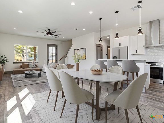 Upstairs are three additional bedrooms, a full bathroom, and a versatile loft with closet that can serve as a fifth bedroom or office. Outdoor living includes a covered back patio and extended front porch, ideal for relaxing or entertaining. Located minutes from downtown Wimberley with easy access to local shopping, dining, and community events. 1-2-10 builder warranties included. Some photos virtually staged.