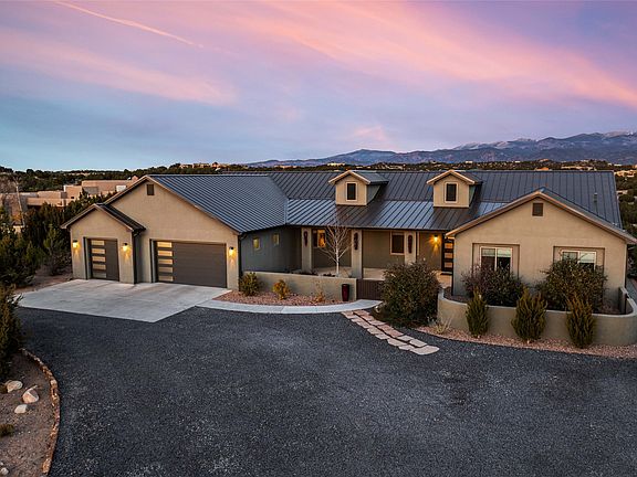 Step into grandeur and breathtaking views of the majestic Sangre de Cristo Mountains in this spectacular Northern New Mexico-style home. Perfectly sited on 3.25 acres to capture both sunrise and sunset views, this 2022 custom-built residence blends contemporary style with a spacious, thoughtful floor plan ideal for both large-scale entertaining and comfortable everyday living.