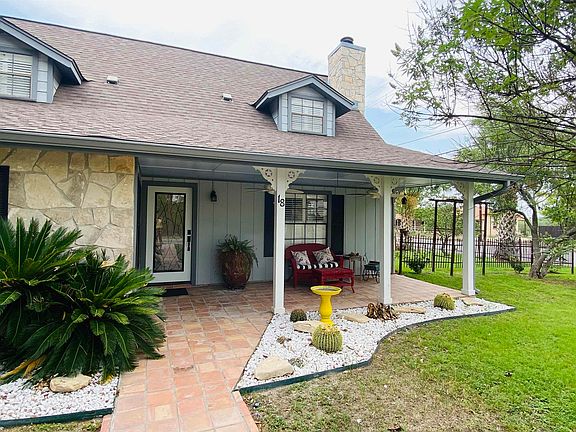 Welcome to 18 Sunset Lane, a charming 2-story home nestled in the serene community of Fort Clark Springs in Brackettville, Texas. This delightful residence boasts 3 bedrooms and 2.5 bathrooms, offering ample space for comfortable living situated on 2 lots. As you approach, you're greeted by a beautiful front porch, perfect for enjoying your morning coffee. Inside the home exudes warmth and character with a cozy fireplace and charming finishes throughout. The sleek kitchen is ideal for culinary adventures, while the spacious primary bedroom provides a tranquil retreat. The back patio is an entertainer's dream, providing plenty of space for gatherings with family and friends. The lush greenery surrounding the property enhances the curb appeal, making this home a true gem in a picturesque setting. Discover the perfect blend of comfort and charm at 18 Sunset Lane, where every detail has been thoughtfully crafted to create an inviting and welcoming atmosphere.