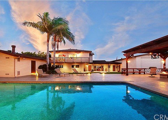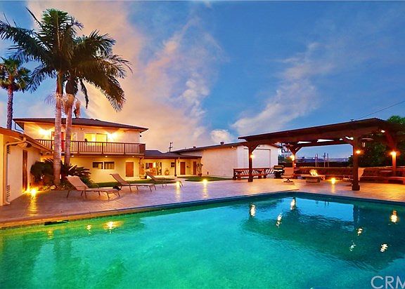 Situated on a cul-de-sac this beautiful custom built 2 level home remodeled in 2010 w/a harbor, mountain & city light view. Large paved driveway. Spacious front porch opens to a spacious foyer & overlooks the formal dining rm w/white washed beam ceiling & view. Living rm is bathed in light w/floor to ceiling windows, white washed high beam ceiling, fireplace, hardwood floors & view. The kitchen is the only rm untouched & ready for your personal design w/rm for expansion w/o adding on additional sq.ft. Off the kitchen is the laundry rm w/a 1/2 bath & door leading to the rear yard & an attached over sized garage w/12' ceilings, ideal for a RV. Dining rm & family rm open out to a large patio ideal for indoor outdoor living. Also on the main level is the master suite & full bath, 2 bds, 3/4 bath in the hallway &/a temperature controlled wine closet. A private elevator w/hidden door for rear yard separate access or a stair case takes you to the 2nd level currently being used as a separate suite & was designed to convert back to one entire home but great for MULTI FAMILY living (or not!) w/everything you need without venturing downstairs w/living rm & balcony w/a view, kitchen, 2 bds w/a balcony over looking rear yard. Full bath & laundry rm. The rear yard is outdoor living at its finest. Sparkling pool & pool house, Arbor & fire pit w/an entertainment system & covered patio. Raised vegetable planter & orange trees w/delicious oranges!