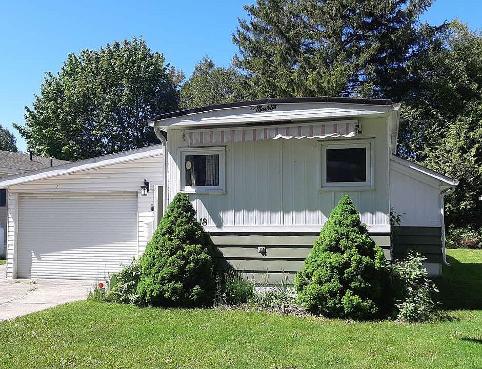 For more info on this property, please click the Brochure button. This updated year-round mobile home is located in Huron Haven Village, about 5 kms north of Goderich, Ontario, just off Hwy 21, & is about 1 km east of Lake Huron. Most residents are 55 years & over (not a requirement). This charming, well-maintained 2-bedroom home w/100-amp service, has newer: high efficiency furnace, central air, electric water heater, appliances, and laminate & vinyl flooring. Newer windows inside home. Over-the-range microwave with vent fan/roof exhaust. A beautiful enclosed 3-season sunroom w/electricity, measures 12 ft x 10 ft (not incl. in sq footage), was added in 2019, w/access from inside & outside home. Four parking spots (part double dwy) outside, and one spot inside the single oversized attached garage (measures 23 ft 6 in x 14 ft 5, and is not incl. in sq footage). Garage contains a workshop, areas for storage, is accessed through the front/back doors and provides home entry. The lovely yard with a garden shed backs onto trees. About a 10-minute walk, a new clubhouse for residents was opened in 2023 & a new outdoor pool in 2024. The wonderful village of Huron Haven, in the Municipality of Ashfield-Colborne-Wawanosh in Huron County, is a short drive to various places & activities, including shopping, beaches, golf courses & a provincial park. Monthly Land Lease Fees with New Lease: Rent of $625, monthly water/sewer flat fee of $75 & estimated monthly lot & structure taxes of $42.87. Transfer of Lease possible if financing not required, with est. mthly rent of $510, (same monthly water/sewer flat fee/taxes).