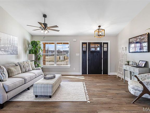 Brand new craftsman-style home featuring 3 bedrooms, 2 full baths, and a main floor laundry. Jefferson R-7 school district. The open, divided bedroom floor plan offers a spacious feel. The kitchen boasts stainless steel appliances (including the refrigerator), granite countertops, a center island, and a pantry. The breakfast room has a sliding glass door with built-in blinds. The primary suite includes a large walk-in closet and a bath with a walk-in shower and double bowl vanity. Craftsman-style doors and ample closets throughout. The unfinished lower level has a rough-in for a bath, offering endless possibilities. Conveniently located just minutes from the school, highway, and Crystal Highland Golf Course.