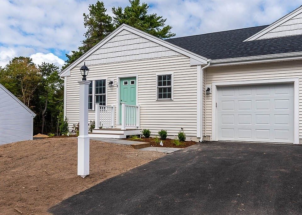 TUPPER HILL - [GPS 1089 Long Pond Rd] - Plymouth's newest 55+ development. This is the last home in the development available . The home is a 2BR, 2BA, 1-level duplexes w/ 1 car att garage with full basements. This unit has a walkout basement. Great for finishing. Open kitchen offering beautiful wood toned cabinets , upgraded Quartz counters, pantry & Lux vinyl plank floors that flows through the main living areas. Main bedroom has its own bath w/ shower, lux vinyl flooring & vanity w/ granite countertops. The separate laundry room w/ lux vinyl flooring. 2nd bedroom is nicely sized for guests or office. A 2nd bathroom offers a tub/ shower combo, vanity w/ granite countertops & Lux vinyl floor. Exterior back deck for warm days.
