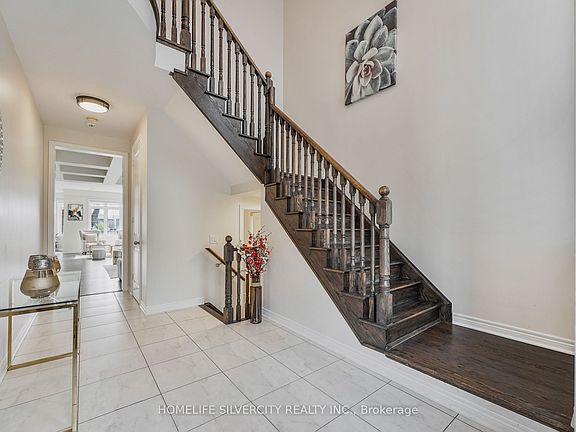 Welcome to this stunning 4-Bedroom Detached Home on Premium Ravine Lot with Legal Walkout Basement and separate entrance. Located in a quiet, sought-after neighbourhood with easy access to schools, parks, and transit. Open concept layout with 9 ft ceilings and coffered ceilings on the main floor. Hardwood flooring and pot lights throughout the family and kitchen areas. Spacious family room with built-in shelving, fireplace, and large windows providing ample natural light. Chef's kitchen with oversized island, breakfast bar, Kenmore stainless steel built-in appliances, double ovens, granite counter tops, and under-cabinet backsplash lighting. Grill-ready gas line on the deck-perfect for outdoor entertaining. Bedrooms: primary suite with his & hers walk-in closets and a luxurious 5 piece ensuite. Second master bedroom with walk-in closet and private 3 piece ensuite. Two additional well-sized bedrooms with a shared Jack & Jill bathroom. Smart home features and energy-efficient upgrades throughout. Just a 3- minute drive to the Go Station. Remote-controlled zebra blinds on larger windows, blinds throughout the home, central vacuum system throughout main floor and second floor. Brand-new, legal walkout basement with separate entrance includes 2 bedrooms, 2 bathrooms, media room, recreation space, and dedicated cold-storage room-perfect for in-law suite or rental income potential. Builder provided separate entrance for basement.