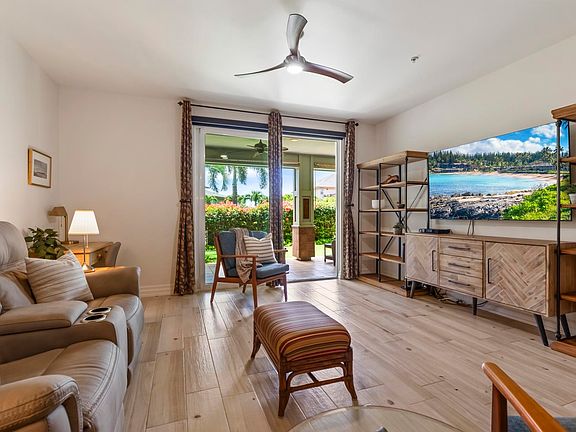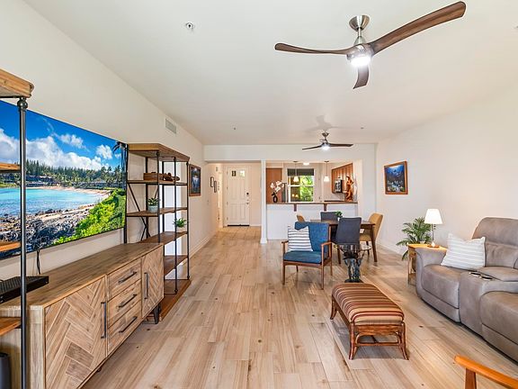 Imagine waking up to the gentle sway of palms, the scent of salt in the air, and the shimmer of turquoise waves just moments away. Nestled just above the golden shores of Kamaole Beach Park I, this beautifully upgraded 2-bedroom, 2-bath condo in South Maui offers the perfect balance of island serenity and modern convenience. This single-level Beachcomber floor plan spans 1,233 sq. ft. of thoughtfully designed interior space, with all bedrooms and bathrooms on the same level for seamless living. Soaring ceilings and large windows flood the open living and dining areas with natural light, while upgraded ceramic tile floors create a clean and elegant foundation. Slide open the glass doors to your spacious 280 sq. ft. covered lanai, where lush tropical foliage surrounds you in a peaceful garden setting, ideal for morning coffee or evening cocktails under the stars. The chef’s kitchen is both stylish and functional, featuring newly sealed Santa Cecilia granite countertops and backsplash, newer stainless steel appliances, and warm maple cabinetry with generous storage, including two pantry closets. Retreat to the tranquil garden-view primary suite, large enough to comfortably fit a king bed and additional furnishings. You'll love the walk-in closet, elegant en-suite bathroom with dual vanities, a soaking tub and shower paired with direct access to the lanai. The second bedroom enjoys lovely morning light and sits adjacent to a full bath with an updated step in shower perfect for guests or a private home office setup. Recent upgrades include a brand-new A/C system, fresh interior paint, newly installed ceiling fans, and built-in sunshades to keep the space cool and bright year-round. Not only is this unit meticulously maintained, but the entire complex is beautifully kept and thoughtfully appointed, featuring resort-style amenities such as a breathtaking ocean view infinity pool, a tranquil spa with waterfall, a fully equipped fitness center, BBQ areas, and a convenient outdoor shower near the pedestrian gate, perfect after a day at the beach. Enjoy the rare convenience of a private 1-car garage plus a second deeded outdoor parking stall. Just one block to Kamaole Beach I and minutes from Kihei and Wailea best shopping, dining, golf, and world-class ocean activities, this is a true gem in one of Maui’s most beloved communities. No vacation rentals allowed, ensuring a peaceful, residential feel. This is more than a condo- it's your slice of paradise. Come experience island living at its finest and call for a private showing with your favorite realtor!