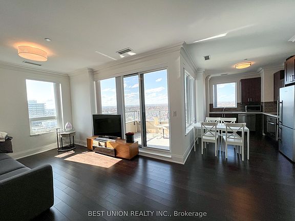 Luxury Riverwalk Uptown-Condo In The Heart Of Unionville/Markham, Developer Corner Unit W/Unobstructed Breathtaking View Of Acres Of Green. Total 1012 sqft/Mpac, Walkout Terrance With Rare Additional Extra Space. Fantastic Layout With Split 2 Bedrooms Plus Den. Parking Spaces are Located a Few Steps Away From the Elevator. Steps To Public Transit, Supermarkets, Restaurants, Hwy 407, Schools & Mall.